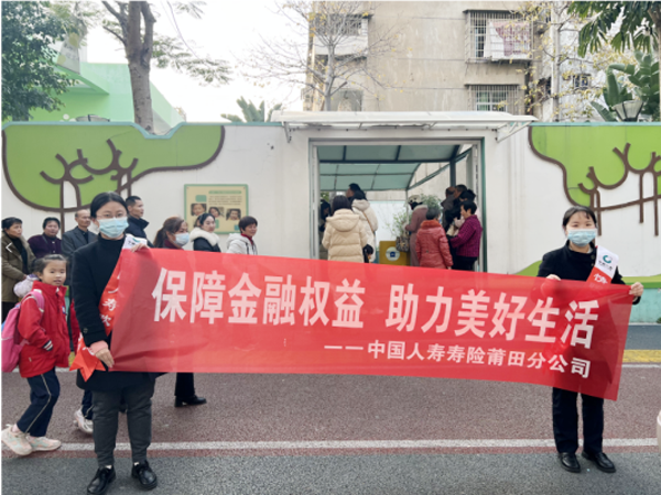 近期,中国人寿莆田分公司及其下辖秀屿区支公司分别前往城厢区筱塘幼儿园及秀屿区实验小学校门口开展“保障金融权益,助力美好生活”主题宣传活动,此次活动致力于向学生们普及保险知识,强化该群体的风险管理意识。