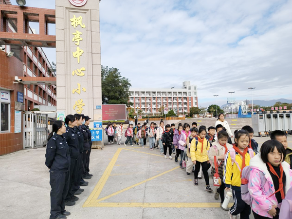 本报讯 校园安全关系到每一个孩子的健康成长,也牵动着无数家长和社会各界的心。为优化校园周边市容秩序,创建良好的公共环境,枫亭镇综治中心开展校园安全“警格+网格”联动的守护行动中,辖区民警携同网格员共同站好“护学岗”。