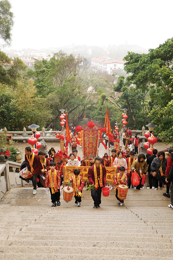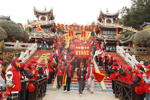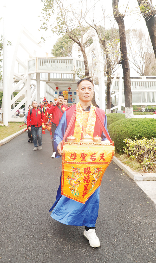 “一年一度的天下妈祖回娘家活动,目前已经在热火朝天进行中。其实早在农历正月开始就有各地妈祖宫庙进香团队自发陆续回来谒祖,截止目前,跟我们祖庙取得联系的进香团大概有230多个,人数近50000人,与往年相比,今年的进香团队人数多、规模大,时间也比往年更早,今年是妈祖诞辰1065周年,预计会有更多的妈祖宫庙回来……所以,我们首次把启动仪式设在天后广场上举行,到时候现场还有很多非遗民俗表演,向各地妈祖敬仰者、游客展示一个非常传统又热闹的民俗盛宴。”湄洲妈祖祖庙董事会办公室主任林群华说,“在今年纪念妈祖诞辰1065周年活动期间,还将举行三月廿二守夜庆诞辰、春祭妈祖大典以及‘和平之树’落成剪彩等仪式,此外,从农历三月初五开始,每天都将有数十支各具特色的民俗队伍在祖庙表演,持续至妈祖诞辰日(农历三月廿三),呈现出‘日日有活动,天天有节目’的非遗民俗盛宴,让各地妈祖敬仰者、游客更深入了解妈祖文化和大爱精神。”