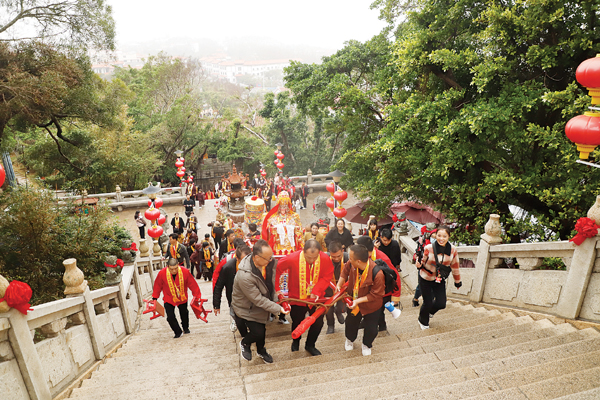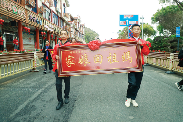 千里寻根谒妈祖,只缘湄洲是故乡。千百年来,妈祖文化薪火相传,遍及50个国家和地区,全球目前有上万座妈祖宫庙。每年妈祖诞辰日前后,海内外妈祖敬仰者都会跨越千山万水,恭送分灵妈祖回到湄洲岛寻根问祖,俗称“天下妈祖回娘家”,是“妈祖信俗”的重要组成部分。