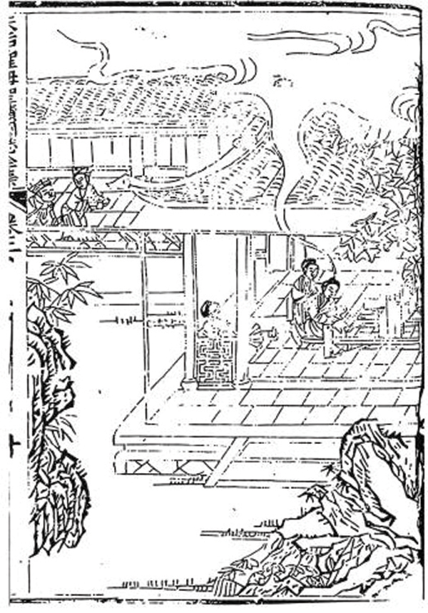 历史上,清代《天后显圣故事图轴》中的“机上救亲”故事,分有“天后神机上出神救父兄”“时天后父兄舟机倾覆 天后空中垂手援之”两幅画面。此外,《天后圣母事迹图志》中,还有“破惊涛遂救严亲”的场景。笔者将清代《天后本传》《敕封天后志》《天后圣母圣迹图志》《林妈祖志全图宝像》等妈祖版画中“机上救亲”的叙事进行比较拟以说明。清代《天后本传》中“抛梭拯溺”,画面上部分,妈祖手里紧握住梭子,脚踏机轴,其母看这般模样感到奇怪,欲叫醒她,下部分海面狂涛汹涌,震天动地。通过构图上的巧妙处理,把同一情节所发展起来的两个环节的场景有机地组织在一个视觉图像里,从而加强了故事情节的紧张和曲折。这种表现特色,在于画面不受任何视点束缚,也不受时间的限制。清代《敕封天后志》中“机上救亲”,画面以古代莆田风格的屋舍一角为主,围墙外面有老树,机房内右边人物是妈祖,有一缕祥云流入屋内并向围墙外飘去,妈祖在认真地学习纺织技巧,或是忽睡出元神状态,站在背后的母亲正在指叫她。清代《天后圣母圣迹图志》中“正织机神游沧海”,画面有一间具有古代莆田建筑风格的屋舍,左右前两边分别有假山和树,屋舍内有三个人物,右边一位是妈祖,屋外有一缕祥云在屋舍上方盘旋并流入屋内,妈祖专心地学习纺织,旁边站着其母亲,正在传授技巧。左边一位是家婢正在整理纺线,后屋廊有两位家仆正端着茶水往前屋走来。近代《林妈祖志全图宝像》中第六回“妃机上忽睡救父兄脱难”,画面构图为居中取势的表现形式,通过文字说明连接图像关系,视觉聚焦于屋舍机房内少年妈祖纺织时忽睡出元神在大海中救父兄,整体布局结构由上下情境的叙事方式转为左右情景,妈祖旁边,其母亲正在呼叫她。通过不同版画中“机上救亲”的妈祖形象对比,可区分明清时期妈祖版画间的视觉图像特色。