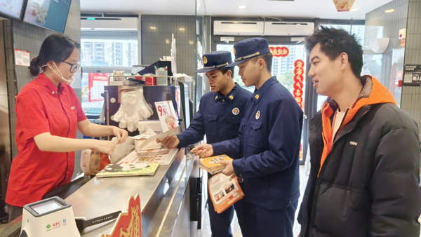 本报讯 2月11日,荔城区消防救援大队西天尾消防救援站走进九华广场,为过往群众及周边住民、商户发放消防安全宣传单页,普及家庭日常用火用电用气、电动车入户飞线充电危害以及节日期间燃放烟花爆竹注意事项等,并对个别商户灭火器使用不规范等问题现场进行指导帮扶,“面对面”教授灭火器的正确使用方法、如何排查商铺内消防安全隐患等,进一步强化了人员的消防安全意识培养。(卓丽清 陈斌)