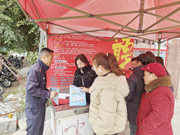 本报讯 2月12日上午,黄石派出所深入辖区多家企业招聘会现场开展反诈宣传活动。