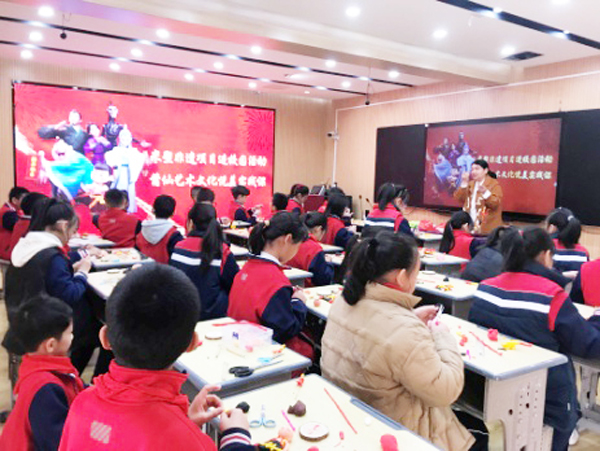 据介绍,米塑被称为“指尖上的舞蹈”,也被誉为“立体绘画,无声的戏剧”。吴氏米塑技艺是以优质晚稻米,并按一定比例加入糯米作为主要原材料,这一传统技艺如今已传承四代。制作上,它不但传承了传统的戏曲人物,还融入流行新颖的现代元素,展现出极强的现代创造性和艺术性。如今,无论是花鸟虫鱼、飞禽走兽,还是传统人物、现代卡通,都能被塑造得形态万千、风姿各异、情韵生动、神形兼备、妙趣横生。每到细微之处,如人物的五官、衣褶,花卉的蕊、瓣、枝、叶等,则用自制形状不一的小刀具雕镂、装点。塑后,涂上无色透明的麻油,使其更显得流光溢彩,引人入胜。最具意义的是,原先的米塑保存时间较短,吴氏米塑在配方上有所改,逐渐由单一的祭祀吉品,演变成具有丰厚的文化内涵、贮藏时间较长的艺术品。这一改变使得这些色彩斑斓、栩栩如生的作品走入了艺术殿堂。吴氏米塑2021年进驻逸夫实验小学,开展米塑教学。