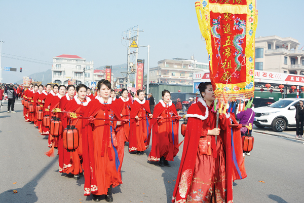 2月17日,农历正月二十,“五帝巡游皂隶开道闹元宵”活动在城厢区灵川镇东进村精彩上演。