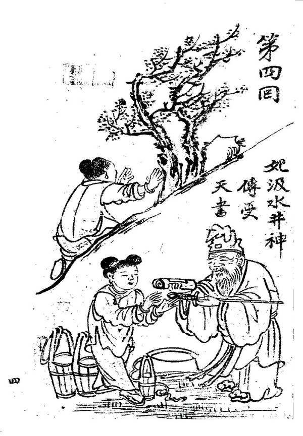 《林妈祖志全图宝像》中“妃汲水井神传受天书”