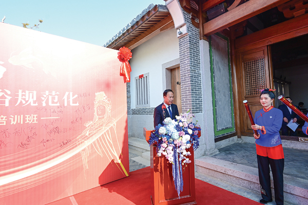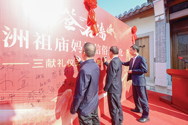 3月23日上午,湄洲祖庙妈祖信俗规范化——三献礼规仪培训班(第一期)在湄洲岛天妃故里遗址公园妈祖书院开班。
