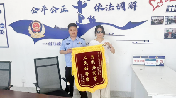 本报讯 近日,赖店派出所交通民警扎西尼玛收到群众陈女士送来的一面写有"为民办实事,人民好警察"的锦旗,为一起交通事故纠纷的温情化解画上圆满句号。