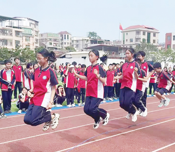 本次运动会设置了“二人三足”“跳长绳”等趣味项目,吸引了众多学生的积极参与。在“二人三足”项目比赛中,同学们两两一组,将相邻的脚绑在一起,共同迈向终点。赛场上,大家相互扶持,喊着整齐的口号,“一二一,一二一……”,步伐一致,默契十足。有的小组一开始略显慌乱,但很快调整节奏,稳步前进;有的小组则一马当先,配合得天衣无缝,引得观众们阵阵欢呼。这不仅考验了同学们的身体协调能力,更增进了彼此间的信任与合作。