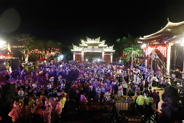 4月19日(农历三月廿二)晚,来自海内外的数千名妈祖敬仰者,在雨幕中齐聚湄洲岛,开启盛大的“守夜庆妈祖诞辰”活动。
