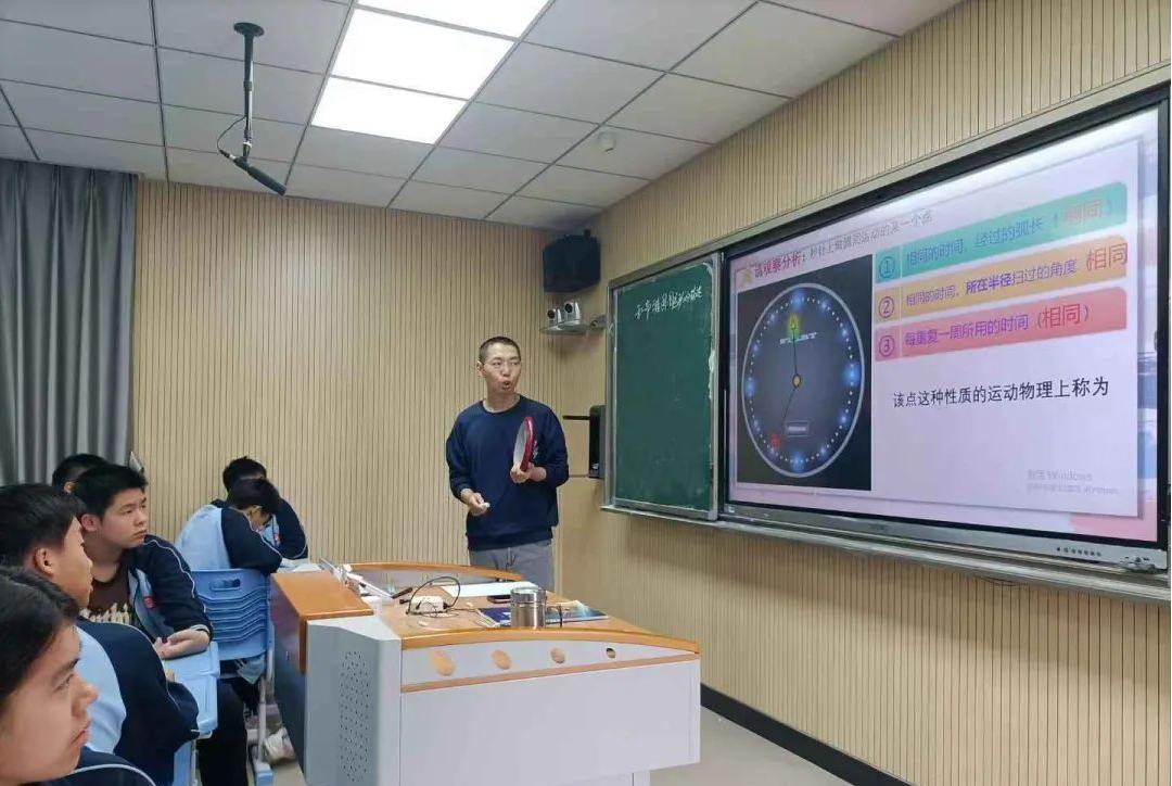 莆田第二十五中学翁国城老师以“结构化建模”见长。通过VR场景模拟秒针转动、摩天轮运行等生活实例,将抽象的线速度方向、角速度等概念可视化,有效突破“运动描述”的理解难点。动态课件实时生成v-ω-r关系曲线,结合皮带传动虚拟实验,引导学生归纳物理量关系,凸显“科学思维”培养的逻辑性与严谨性。