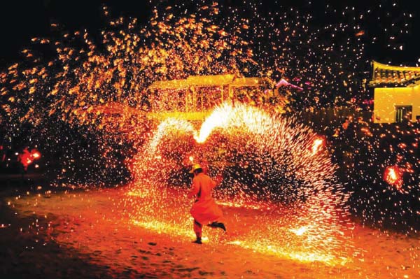 非遗打铁花,火树银花映湄洲,诠释力量与美的完美结合。