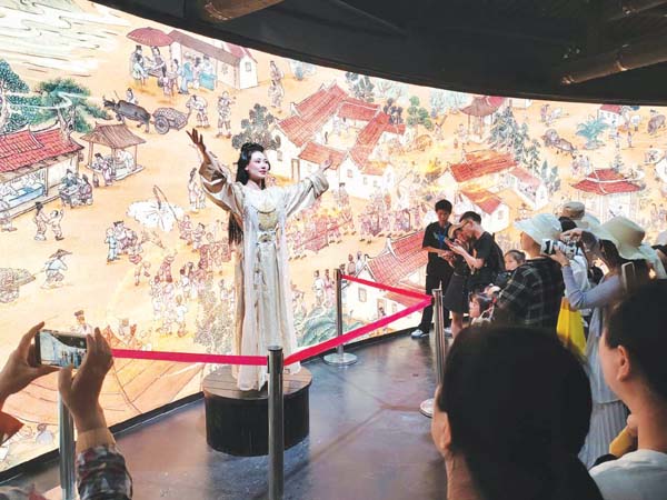 “五一”期间,九鲤湖风景区以北宋名画《千里江山图》为灵感,通过五大特色主题活动,在各山水场景中植入不同的古装角色扮演,打造沉浸式山水实景氛围。游客游览景区期间可通过参与打卡互动,如化身“古代打工人”,体验传统手工艺制作等可获得换取祈愿牌的银票。同时,还可以与哪吒、汉服爱好者共同参与快闪舞蹈,感受国潮活力;于湖畔茶席跟随茶艺师品茗习礼,静享片刻禅意,游客在沉浸式体验中读懂仙游的历史厚度与文化温度。