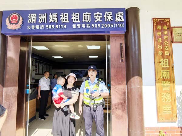 本报讯 5月1日,在湄洲岛祖庙景区内一名儿童与家人走失后嚎啕大哭,巡逻的工作人员发现后立即将其抱至祖庙警务室。湄洲派出所民警王坚章见状,一边耐心安抚孩子情绪,一边尝试询问父母姓名、联系方式等信息,但因孩子年纪太小,无法清晰表述。