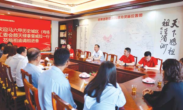 这并不是颜天禄第一次来祖庙朝圣。2016年,他便以马来西亚和中国经济贸易代表的身份到访祖庙。2018年,湄洲妈祖分灵马六甲福建会馆天福宫,颜天禄特地前往机场迎接分灵妈祖。