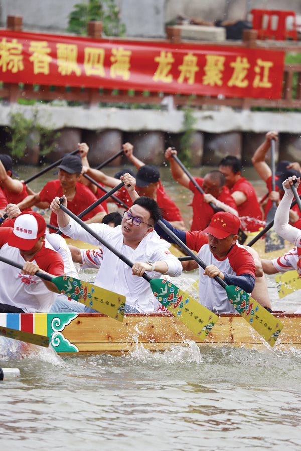 5月31日(农历五月初五)下午,位于荔城区黄石镇东甲村的二洋沟两岸人头攒动,鼓声震天,一年一度的端午龙舟教渡在这里举行,十多艘龙舟在沟面上来回穿梭,舟上的健儿们随着锣鼓声的节拍,挥动着手中的船桨,齐心协力向终点飞快划去,岸边围观群众的加油声和呐喊声,一浪高过一浪,大家在健儿们的“速度与激情”中,感受龙舟文化的非凡魅力。(时报记者 翁志鹏)