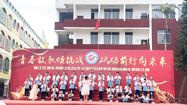 本报讯 为纪念抗战胜利80周年,5月27日,涵江区塘头学校举办“青春放歌颂抗战,砥砺前行向未来”主题歌咏比赛。全校以班级为单位参加了这场充满教育意义的音乐盛会。