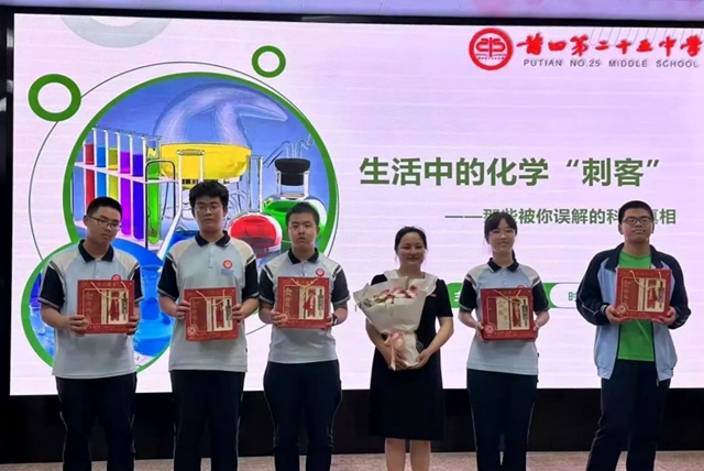6月3日晚,莆田第二十五中学“书香校园 智慧阅读”系列活动之“兰楹夜话”第十一期讲座如期举行。本期讲座以 “生活中的化学‘刺客’—— 那些被你误解的科学真相” 为主题,特邀化学学科骨干教师余才芳老师担任主讲,全校师生共同参与,在科学与生活的交织中开启了一场别开生面的知识之旅。