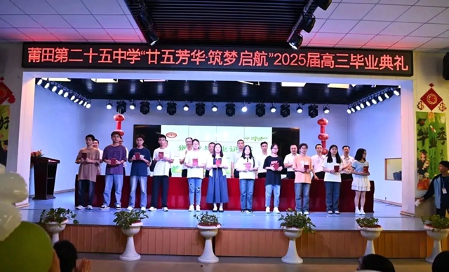 6月11日上午,莆田第二十五中学2025届高三毕业典礼在文体活动中心举行。校领导班子成员、高三全体师生齐聚一堂,共同见证这一庄严而温情的时刻。典礼以“廿五风华,筑梦启航”为主题,为毕业生送上真挚的祝福。