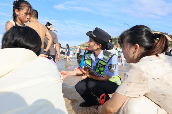 活动中,民辅警深入莲池沙滩,通过发放宣传资料、现场讲解等方式,结合近期真实案例,向游客普及危险水域识别、溺水自救技巧、正确施救方法等防溺水安全知识,提醒家长看护好未成年子女,不要在无安全保障区域下水游玩。同时,民警主动对接沙滩安全员,进行深入沟通交流,共同探讨紧急救援响应流程优化、救生设备配备检查等关键环节的强化措施,强调要加强日常巡逻和安全提醒,及时劝阻危险行为,共同筑牢沙滩安全防护网。