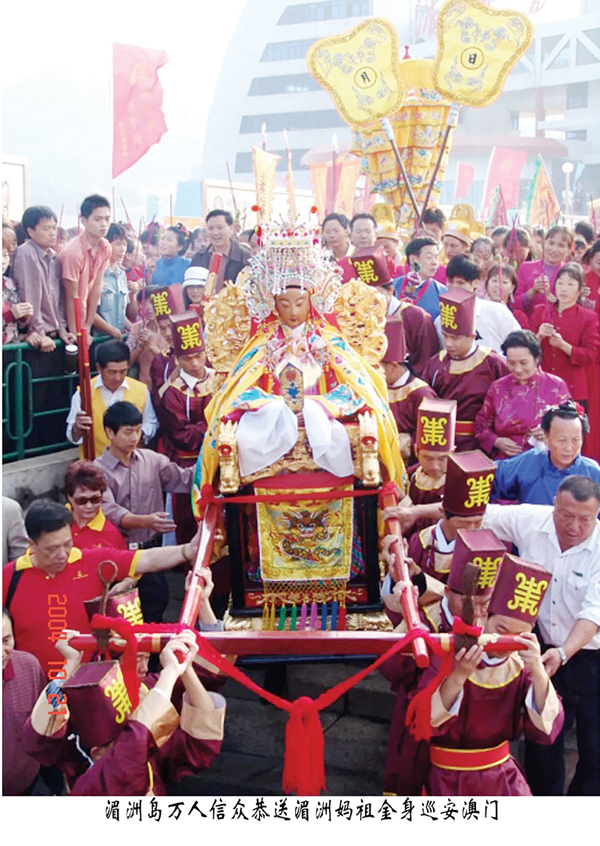 据悉,妈祖文化在澳门的传播历史源远流长,湄洲妈祖祖庙与澳门中华妈祖基金会一直保持着密切的交流,情谊极为深厚。2004年10月,在澳门中华妈祖基金会的积极推动下,湄洲妈祖首次赴澳门巡安。作为第二届澳门妈祖文化旅游节的重要内容,巡安活动吸引了众多妈祖敬仰者踊跃参与,极大地促进了湄洲与澳门之间的妈祖文化交流。(时报记者 翁志鹏 通讯员 周建国 林子明 陈林 程黎婷)