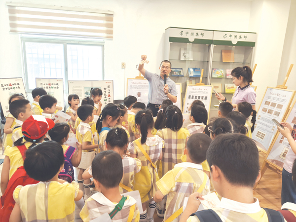 活动分为“方寸讲坛”“邮向未来”两个环节。中华全国集邮联合会理事邱盛先生化身“邮票导师”,为孩子们生动讲述邮票的起源与构成,带领孩子们体验撕邮票的乐趣,并一同参观“邮票上的中国书法”迷你邮展。在“邮向未来”环节,东圳路邮政支局局长林静现场指导,孩子们认真学习在信封上粘贴邮票、将信件投入邮筒,感受传统书信传递的意义与情怀。