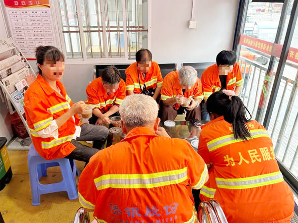 活动开始了,环卫工人刘阿姨喝着冰凉的绿豆汤,笑着说:“社区想着我们,干活都有劲了!”在送清凉的同时,网格员也不忘向居民们宣传反诈,普及反诈知识,提醒大家关注反诈宣传活动,不听、不信、不转账,增强居民的自我防护意识。