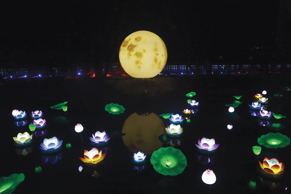 《遇见莆田》登岛森林夜游灵感来源于莆田的自然景观(如白塘秋月、九鲤飞瀑、汀港山、湄洲岛彩虹跑道)、非遗(如九鲤灯舞、火树银花)和民俗(如月季花“妈祖花”)。该项目打破时空界限,通过灯光、音效、交互设计等现代科技手段,构建未来感夜游方式,让游客在登岛后感受到与乘船夜游截然不同的文化体验。