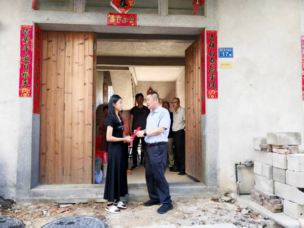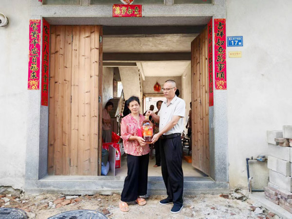 方文增常务副会长代表福建固德香料有限公司送去助学金,祝贺方兰玉同学成功上岸。