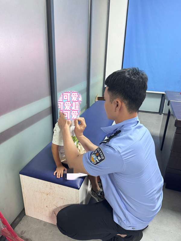 本报讯 8月11日,20时15分许,一名群众在兰溪桥下游乐场发现一小孩走失,在巡逻中的仙游县公安局巡特警大队队员李晓鹏将其带回兰溪洪桥警务站,由于找不到家人且陌生环境,孩子受到惊吓啼哭不止,李晓鹏立即对小孩进行安抚、帮助其擦拭眼泪同时查询了解基本信息,并安排一组警力去溪边游乐场附近巡逻查看是否有人丢失小孩,随后在周边发现正在寻找孩子的父母,经确认身份后将孩子父母带至警务站领回小孩。民警叮嘱家长要看护好孩子,孩子父母对民警帮忙找回小孩表示感谢。(郑晴)