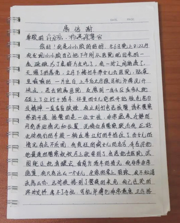 本报讯 8月13日,龙桥派出所收到一封格外厚重的感谢信,近800字的满满两页纸中,写满了一位妈妈的滚烫谢意!感谢信的背后有一段温暖人心的故事……