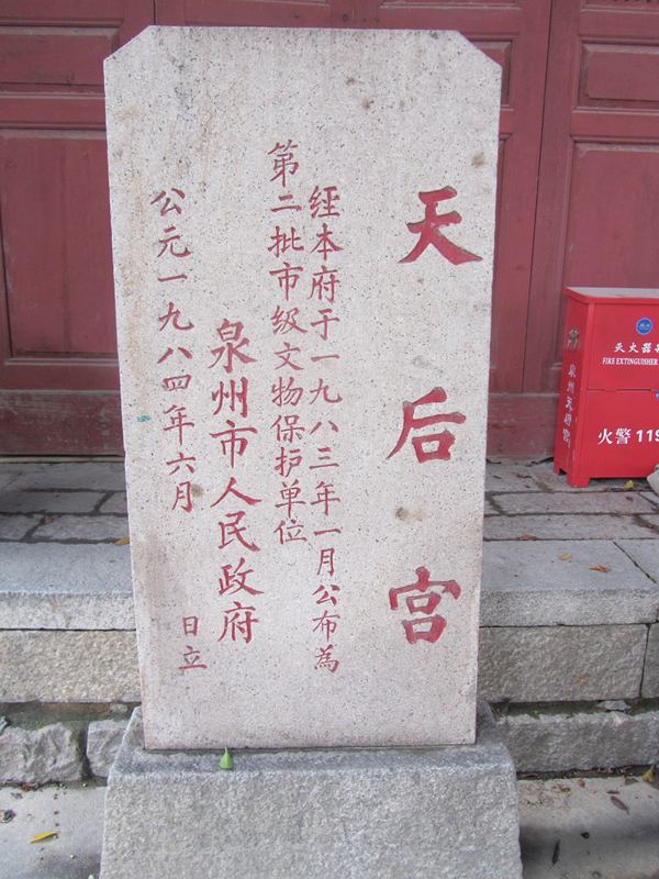 由于莆田妈祖事迹的广为传播,沿海群众、航海者都尊奉妈祖为女神,并立庙以祀,求其庇佑平安。故《泉州府志》有泉州于宋庆元二年(1196)始建天后宫的记载。这座天后宫位于泉州市南门,原名“顺济庙”,取其济以顺风之意。