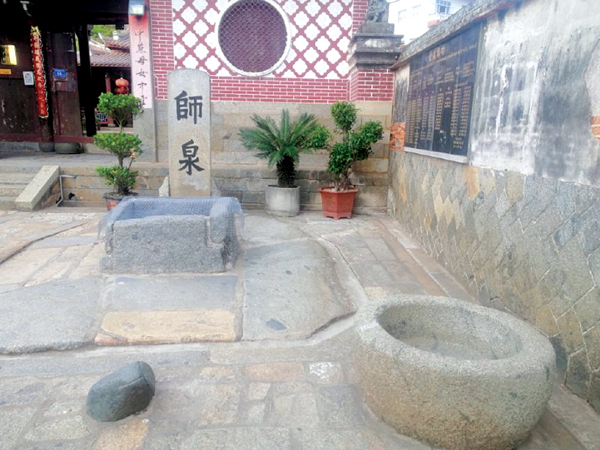 在天后宫外大埕东北角,有一口古老的师泉井,是平海天后宫重要的文物,见证了清政府收复台湾的历史。古井也用108块方整花岗岩砌筑而成,平面呈龟形,龟背中为井口。