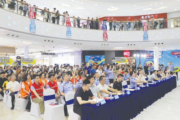本报讯 7月11日,城厢公安分局联合城厢区政法委在万达广场开展“全民反诈在行动,平安共建促和谐”夏季平安宣传活动。