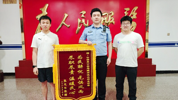 本报讯 7月16日上午,鲤南派出所收到群众送来的一面印有“为民解忧,无惧风雨,尽职尽责,温暖民心”的致谢锦旗,感谢民警为其解决交易纠纷。