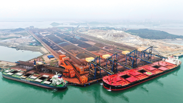 双巨轮同步作业,国际大宗散货枢纽港效能凸显。近年来,该站提供“一船一策”精细化保障,推行国内移泊“免手续”、短时靠泊“一次办”等惠民措施,助力罗屿作业区将来自全球多地的铁矿资源中转到长江中下游各省,以及日本、韩国、东南亚等国家和地区,已成为深入内陆、辐射沿海、连接两岸的国际大宗散货枢纽港。 (时报记者 郑育俊 通讯员 吴志 林孟)