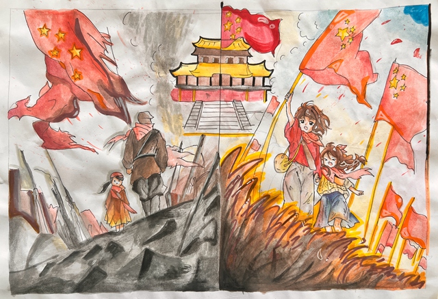 2025年暑假,莆田第二十五中学准高二年段布置“铭记抗战岁月,见证时代变迁——纪念抗日战争胜利80周年”主题美术作业。同学们以抗日战争胜利80周年为核心,从身边环境、城市建设等六大维度今昔对比入手,结合历史与现实,挖掘抗战精神当代传承与创新,展现中华民族从苦难走向复兴的壮阔历程。此次活动将美育与德育融合,助力学生在艺术创作中厚植家国情怀。