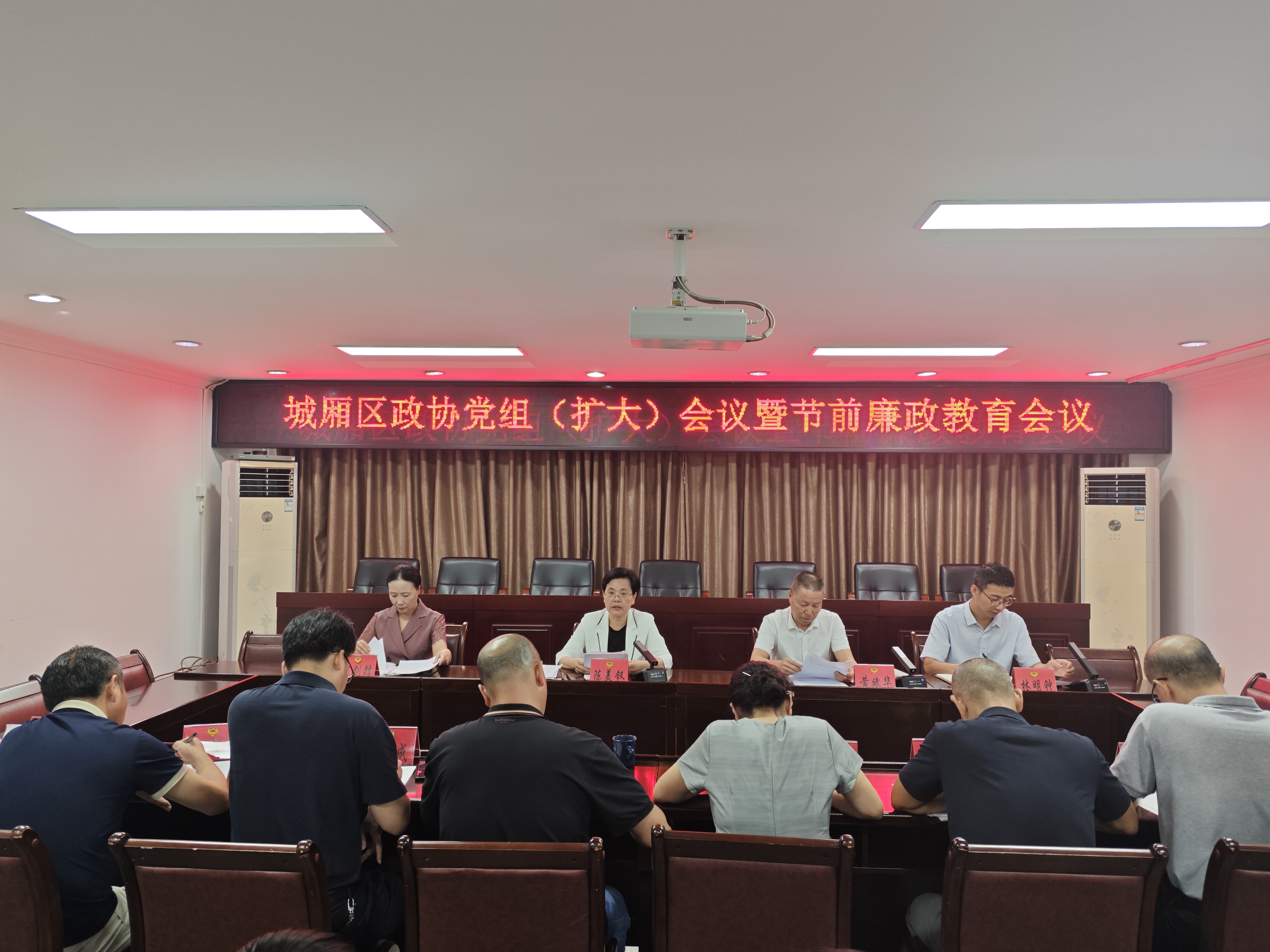 本报讯 9月30日,城厢区政协党组(扩大)会议暨节前廉政教育会议召开。区政协党组书记、主席陈美钗主持并讲话,区政协副主席黄斌华、何剑锋出席。