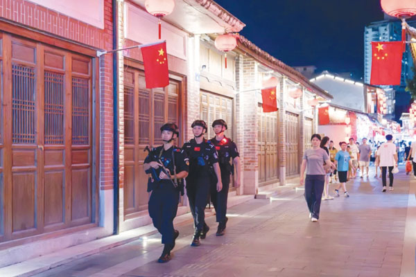 亮灯见警,守好节日“烟火气”。针对国庆中秋假期期间,古街、商圈、公园等部位人流量激增的特点,镇海派出所结合辖区活动安排和城区治安防控特点,科学部署巡防勤务,严格落实“1、3、5分钟”快速反应机制,加大对辖区中心商圈、车站、广场、公园等人流密集场所进行巡逻,夜间重点加强对娱乐场所进行巡逻,构建全覆盖、无盲区的巡逻防控网,确保节日期间辖区社区面持续安定稳定,让安全感充盈在辖区的每一个角落。