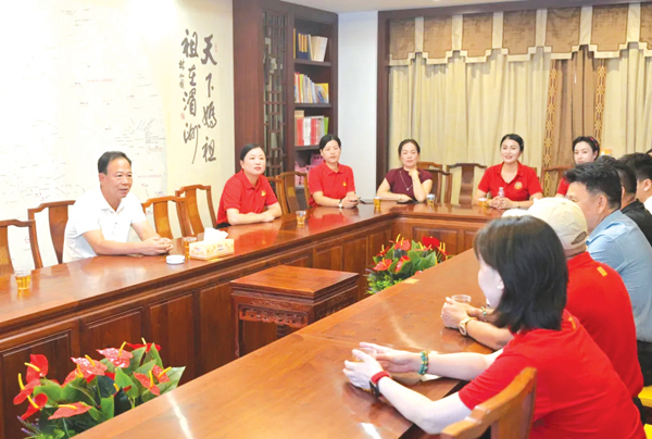 日前,广西龙门水都董事长苏受吉、广西妈祖交流协会会长侯文坤一行赴湄洲妈祖祖庙参访交流。湄洲妈祖祖庙董事会董事长林金赞对众人的到来表示热烈欢迎,并邀请众人在祖庙董事楼开展交流座谈会。