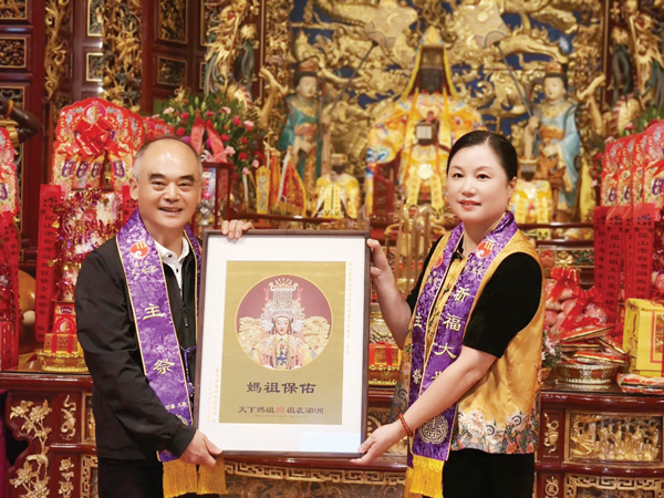 10月19日,慧聚天后宫举办妈祖入火安座15周年庆典活动。两岸宫庙代表、各地台商、台青及同胞齐聚一堂。湄洲妈祖祖庙董事会秘书长李少霞代表祖庙董事会受邀出席活动,众人共同向妈祖敬献礼,以续写两岸心灵契合的新篇章。