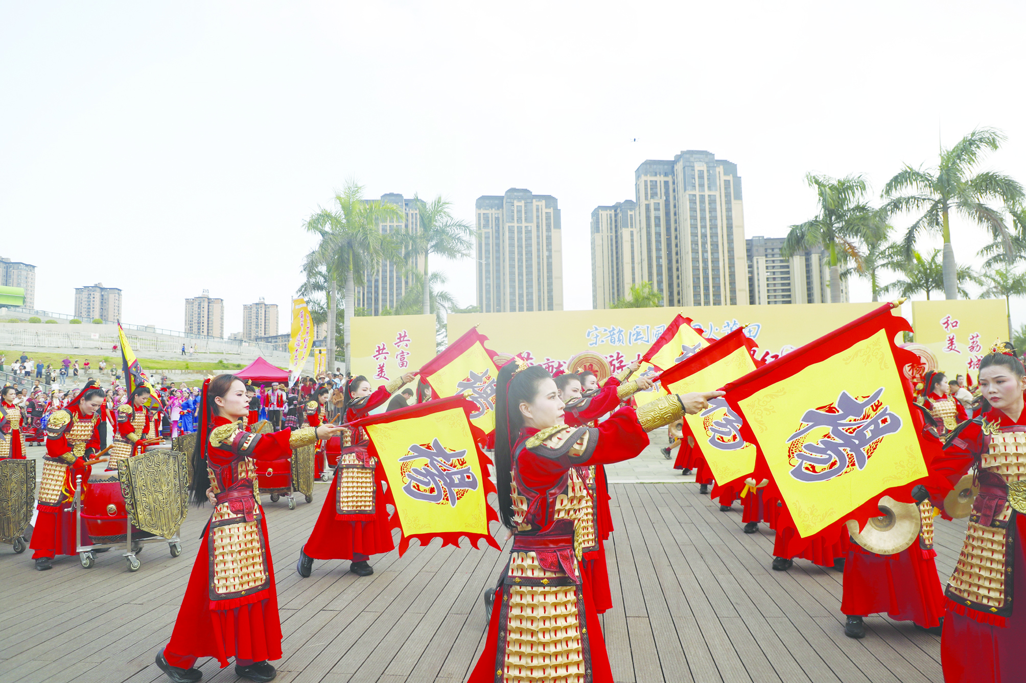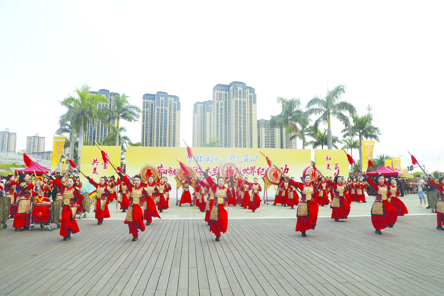 在前不久我市举行挑战“最大规模”“最长距离”龙舟巡游木兰溪活动期间,长达10公里的河道两岸,百人“杨门女将”表演队、舞龙舞狮队以及车鼓队等众多民俗表演队为龙舟健儿助威鼓劲的同时,也为活动增添了浓厚的氛围,成为一道亮丽的风景线。其中,来自荔城区黄石镇穀城宫百人“杨门女将”团队首次正装亮相在活动现场,身着红甲衣的队员们表演着“凯旋舞”,英姿飒爽形象惊艳全场,也成为当天现场热点之一。