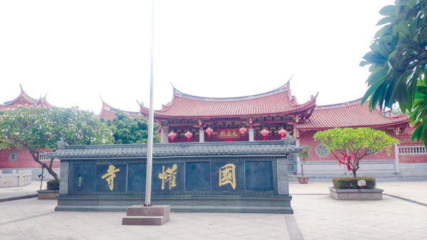 国欢寺在今涵江区国欢镇塘西村。《兴化府莆田县志》卷四载:“国欢寺在延寿里。……明万历壬子(1612),给谏黄起龙命僧如忍等募建佛殿,兼请藏经。国朝康熙八年(1669),僧超旻重修。”天启丙寅九月,商梅在国欢寺别离宋珏、徐玄生等莆田诸子。《汇选那奄全集》中商梅《九月十一日在国欢寺别比玉玄生诸上人》载:“同来山寺独言归,两地相关心自违。菊色露中看未了,松声天末听应微。每怜夜月堪携手,亦向秋霜感授衣。莫道为期原不远,临行能免思依依。”