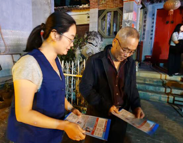 宣传摊前早已人头攒动。志愿者们带着图文并茂的手册、生动的案例展板,精准聚焦老年人易中招的“高频坑”。通过发放图文手册、演示诈骗案例、一对一答疑等方式,手把手教大家识别“免费体检”等诈骗套路,还现场指导老年人开启手机“来电预警”功能。