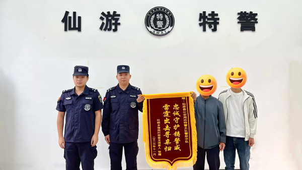 本报讯 11月3日,仙游县公安局收到群众送来的一面印有“忠诚守护铸警威 雷霆出击寻亲归”的致谢锦旗,对警航中队队员找回走失老人表示衷心感谢。