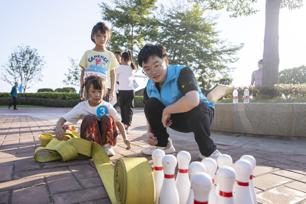 本报讯 11月1日,一场别开生面的消防亲子嘉年华在玉湖木兰滨溪公园正热火朝天地进行着,处处洋溢着欢声笑语。莆田市荔城区消防救援大队精心策划了“消防知识问答”“消防飞行棋”“水带保龄球”“1.19公里亲子公益跑”等八个游戏环节,旨在通过亲子间的默契配合与互动游戏,让消防安全知识在轻松愉快的氛围中深入人心。