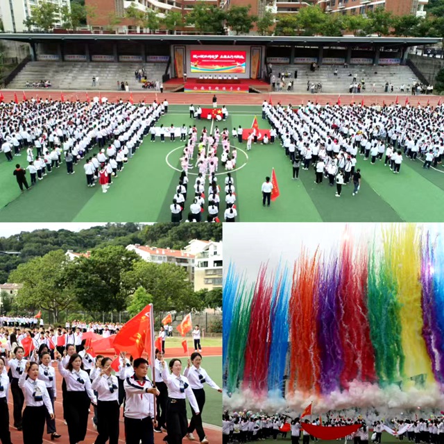 国旗队队员们拉着鲜红的国旗,迈着整齐有力、铿锵坚定的步伐率先走进会场,那鲜艳的色彩与坚定的步伐,瞬间吸引了全场的目光。在庄严的国歌声中,五星红旗冉冉升起,全体师生肃立,目光聚焦在升旗台,心中涌起对祖国的无限敬意。裁判员代表与运动员代表上台宣誓。裁判员代表阮建意老师坚定承诺,将秉持公平、公正、公开的原则,认真执裁每一场比赛,确保比赛结果的公正性。运动员代表宣誓,立志在赛场上以顽强的意志挑战自我、超越自我,展现出泗华学子的精神风貌。随着学校校长宣布运动会正式开幕。现场掌声雷动、欢呼声此起彼伏,运动的热情如同一团火焰,瞬间被点燃。