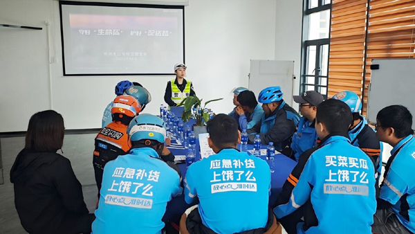 本报讯 11月13日上午,城关中队组织民警走进饿了么外卖站点,开展交通安全宣传活动,切实提升外卖骑手的安全出行意识,全力防范道路交通事故发生。