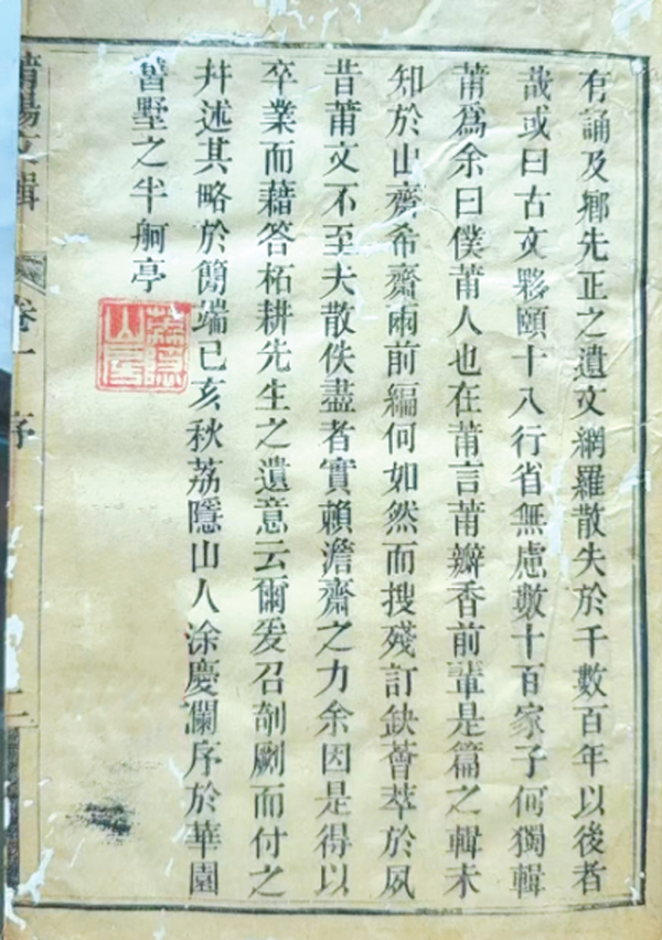 ▲涂庆澜辑《莆阳文辑》(自序) 平凡/摄