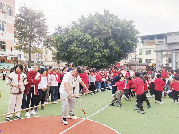 本报讯 为进一步贯彻落实“健康第一”的教育理念,推动阳光体育运动的深入开展,丰富学生课余文化生活,增强学生身体素质,培养团队合作精神与集体荣誉感。1月16日下午,荔城区北高镇呈山小学组织开展“团结一心 绳采飞扬” 拔河比赛。